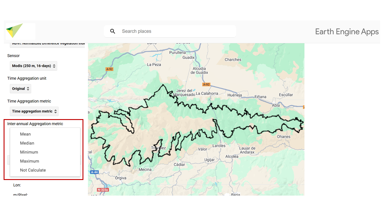 Select the temporal aggregation method to run your analysis. Temporal aggregation methods allow you to summarize data over time periods using different statistical techniques called reducers.