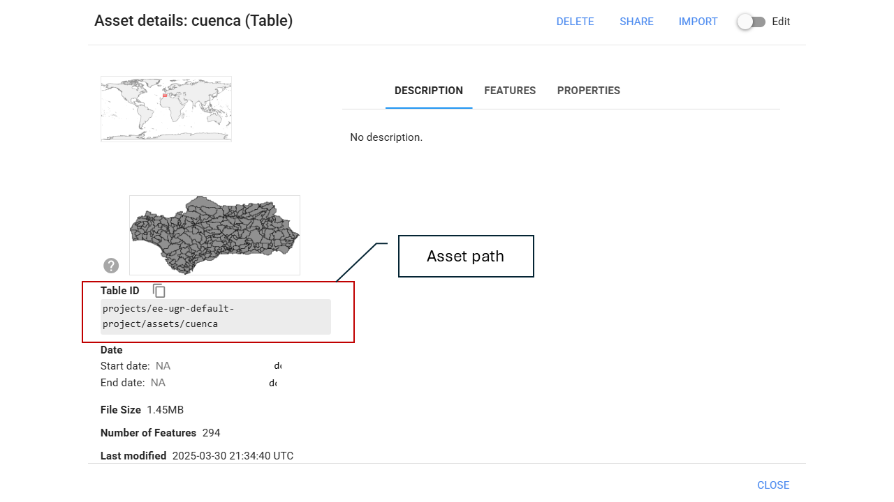 - Once processed, the asset will be available in your GEE account.