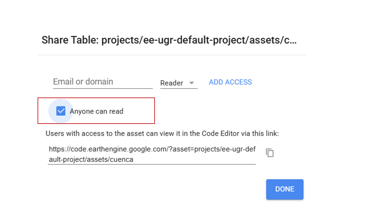 - Share the asset as public.
