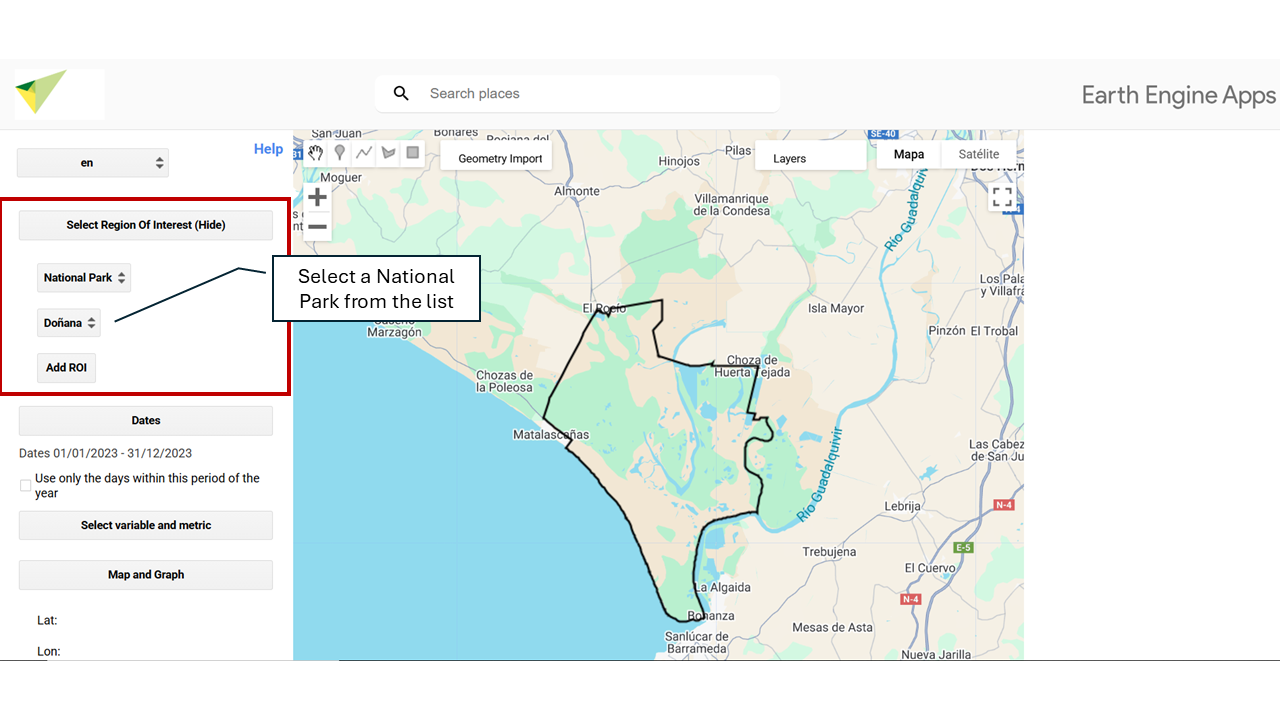 You can select any of the National Parks of Spain and Portugal available on the platform as your study area.