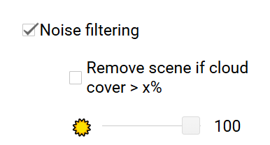 When this box is checked, a scene-based cloud filter will be applied. Scene-based cloud filtering is a process used in satellite image analysis to remove or reduce the interference caused by the presence of clouds in each image, improving data quality. As a result, analyses will more accurately reflect the actual characteristics of the Earthβs surface.